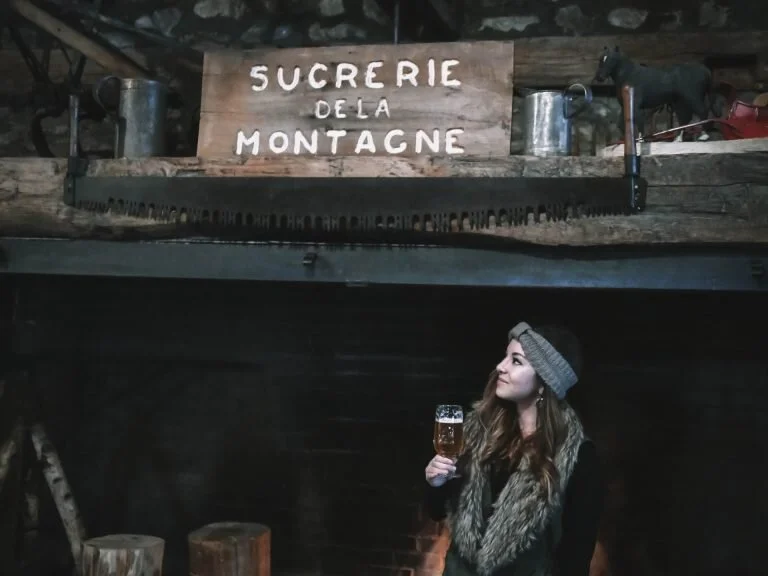 Sucrerie de la Montagne is an authentic “sugar shack” that’s open year round. Had we known in advance that we could have stayed overnight at the sugar shack, we absolutely would have! Apparently, you stay overnight in a traditional log cabin .