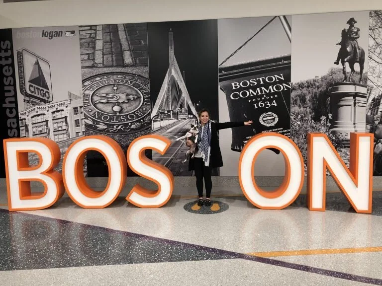 We arrived in Switzerland and desperately looked for a pet relief area (which they had none). At this point, Daisy hadn’t gone to the bathroom in 8 hours. For anyone who’s traveling internationally with a pet, at Boston Logan Airport there is a Pet Relief Area in Terminal E. For anything who’s traveling to Zurich, there is no Pet Relief Area. Thankfully, the Swiss Business Class Lounge had an outside area where we hung out with Daisy. She didn’t understand the pee pads . Word of advice to anyone doing a long flight with a dog: train them how to use pee pads well in advance. I guess I kind of just thought she’d get it and if she had to go bad enough that she would, but she didn’t. Instead, she used the pee pads as a place for her to lie down. We had to convince her to eat by playing games with her food . Our layover was 6 hours, so for those 6 hours we sat outside, walked her back and forth, and tried to tire her out so that she would be okay for the final 10 flight to Bangkok.
