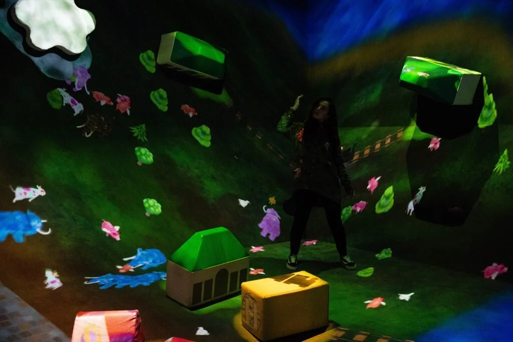 It was pitch black walking through the hallways. There is no museum map, you’re encouraged to wander and explore. You’re greeted with abstract sights and sounds before you make it to the actual exhibit, which makes this one of the cooler museums I’ve been to. What makes this museum different and great is that you can engage with the art! There were large rooms where projections covered the floors and when you walked through the projections would react to you. I personally loved how music accompanied each exhibit. I think if more artists expanded beyond just sight or just sound in their art, it would make their art more memorable.